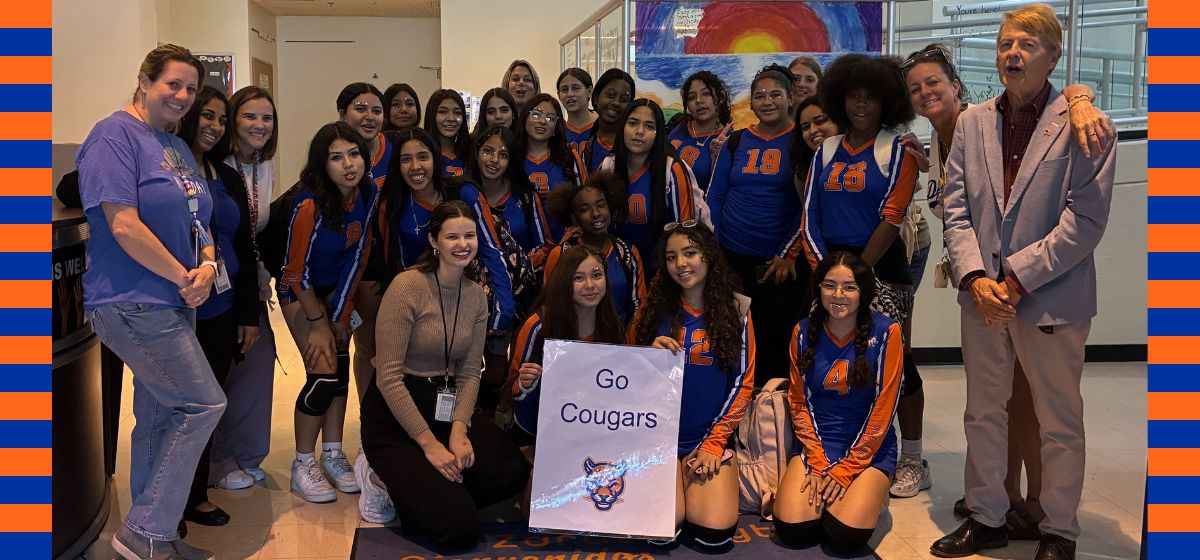 Este mes, nos tomamos un momento para celebrar el final de una gran temporada para nuestro equipo femenino de voleibol de 8.º grado. Cada estudiante fue animada por el resto de sus compañeras mientras se tomaba una foto con un maestro favorito que eligió para compartir este momento. ¡El equipo tuvo una excelente temporada y estamos emocionados de que continúen su trayectoria en el voleibol en la escuela preparatoria!