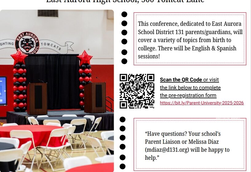 East Aurora School District 131 has a new mission, vision, and five-year strategic plan. East Aurora School District 131 tiene una nueva misión, visión y un plan estratégico de cinco años.